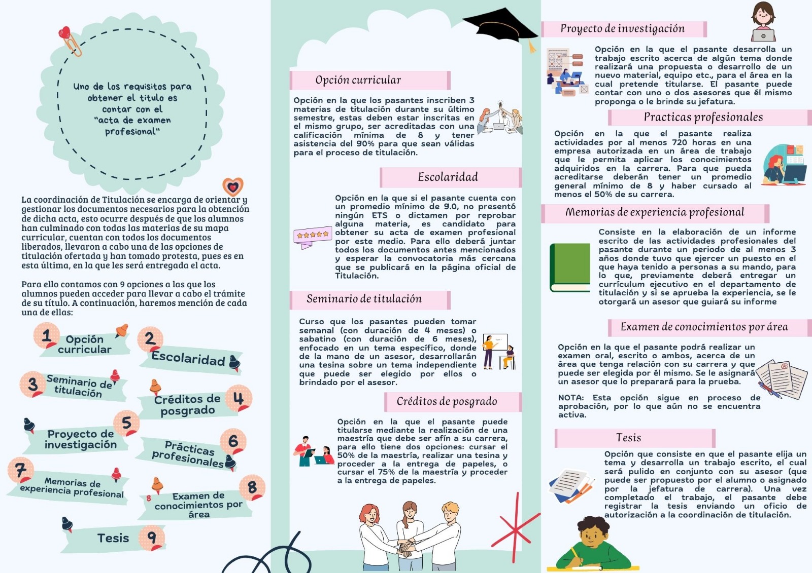 La Coordinación de Titulación Profesional es el área a través de la cual se ofrece asesoría y atención para acreditar algunas de las diversas opciones de titulación con el fin de que todos los egresados del IPN y de escuelas incorporadas en el Área de Ciencias Sociales y Administrativas, se integren a la vida productiva nacional con calidad competitiva.